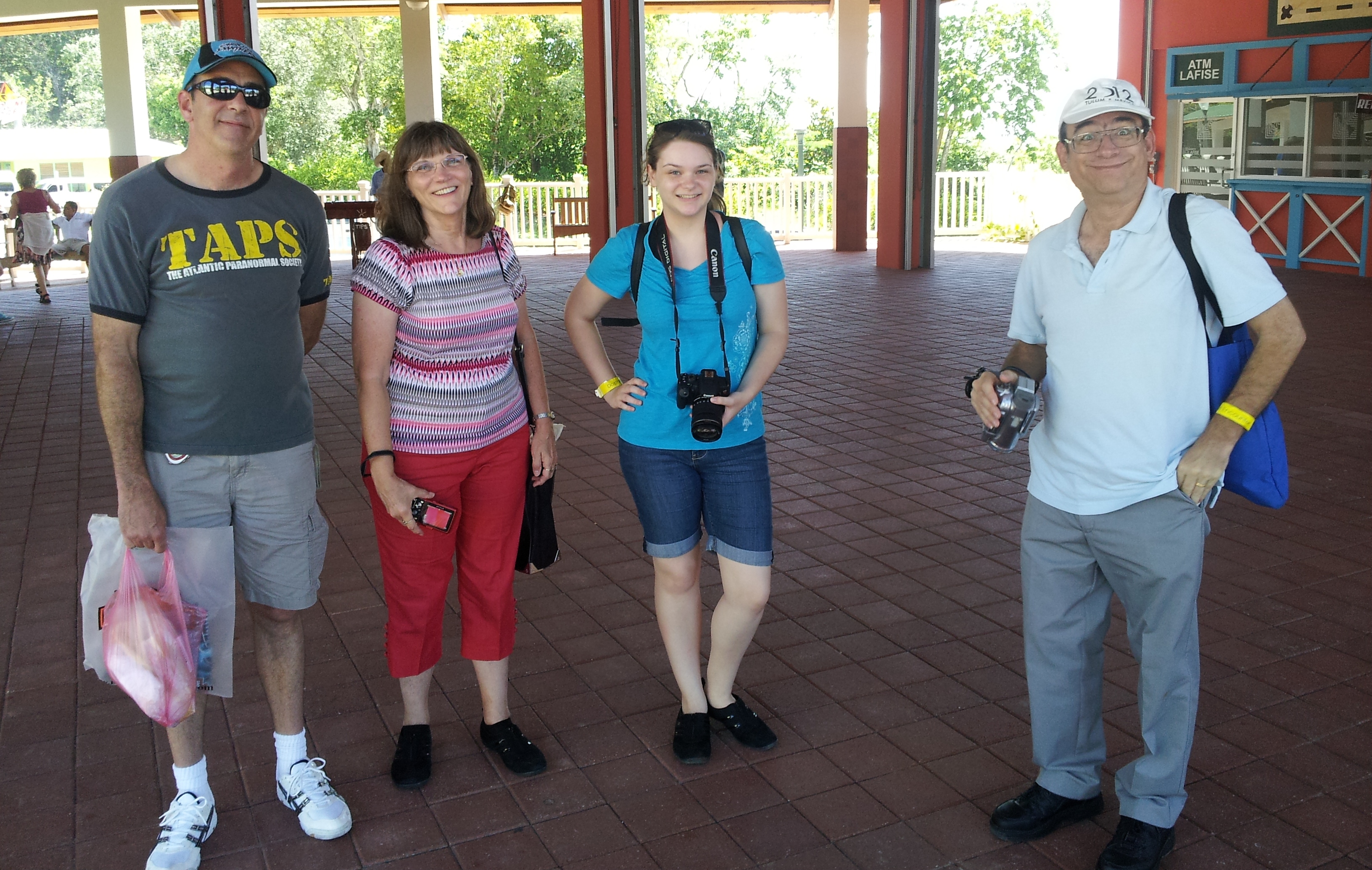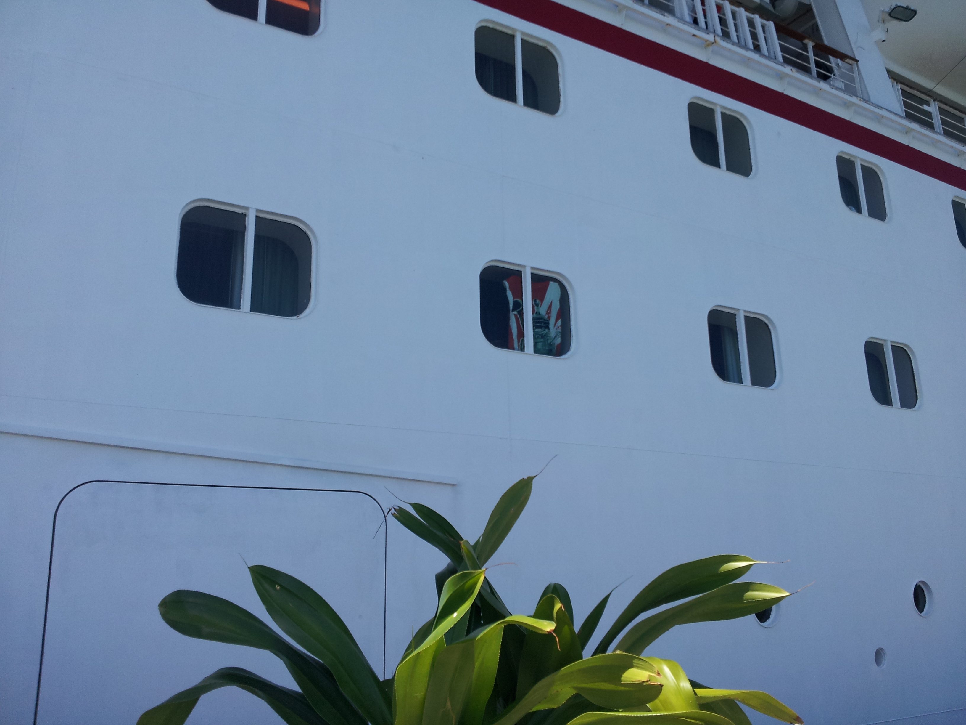 In line to return on board the cruise ship, either Alice or Ashlee spotted a towel