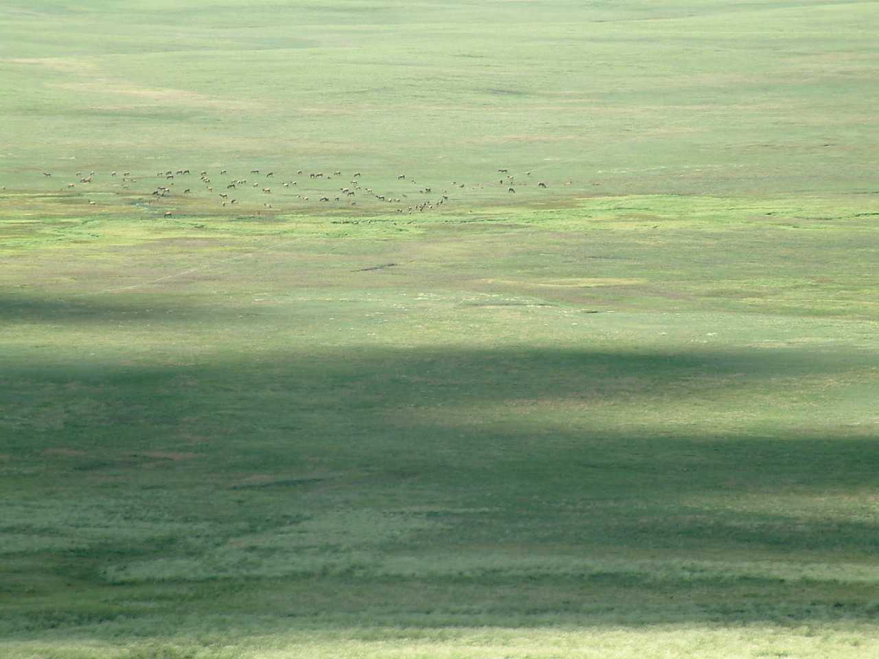 The little brown dots on the right are grazing animals.