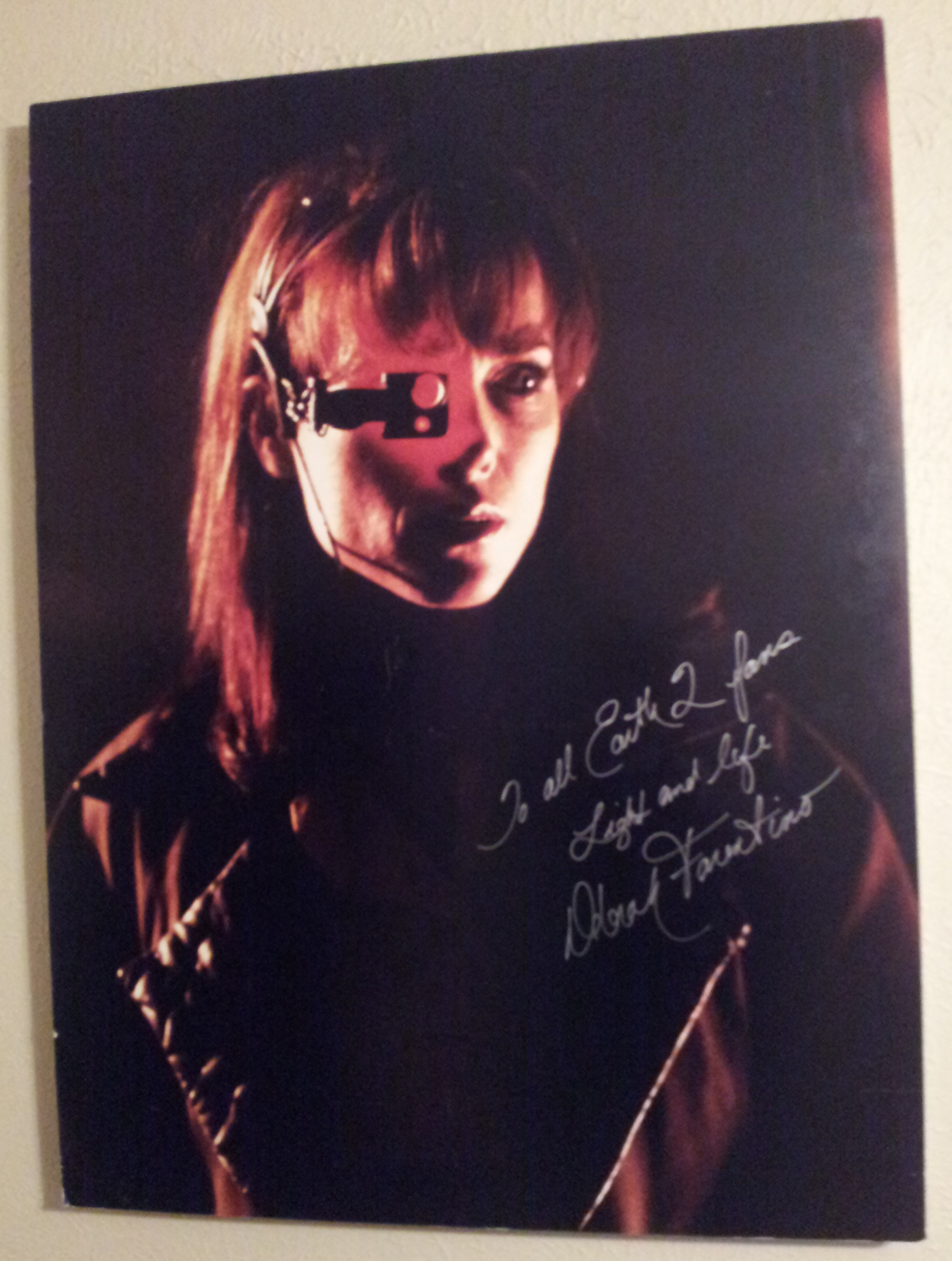 I wanted Debrah's autograph to be personalized somehow. But because this is such a special item, I didn't want any one fan's name on it, even my own, because I felt that would just ruin it. So I asked her to sign it to all Earth 2 fans.